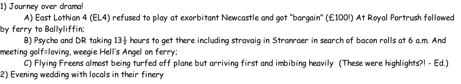 "What's in a name?" - a good deal if this is anything to go by, but that didn't deter Doog who followed on this year's pattern of gross winning scores in the 70s with a fine 72. This was too hot a pace for him to maintain in the afternoon, however, and Mr. Steady himself (see Montrose), Robin, stole in for the afternoon and the day with his second net 70.