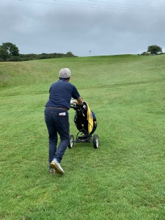 The weather has been reported on and it’s fair to say that there were some rumblings on account of it, but eleven brave souls set out to face the elements. After some high-handed and undemocratic rearranging of the draw by some unnamed individuals, the first group, which had been a 3 ball with buggy, was converted into a 4 ball with buggy and it duly set off on a crazily tacking path down the 1st hole. Fortunately that aberrant behaviour was precisely that and things did pick up as the round progressed.