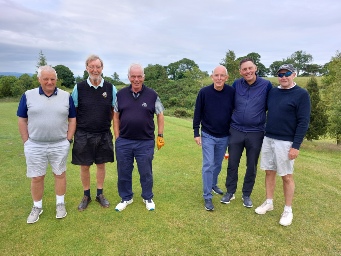This outing was arranged by Leo through his friend, Donnie, who is the current captain of the West Lothian club. He joined us and was kind enough to say that he found us “a decent bunch of guys” (or words to that effect.) Those of us who made it along had a grand day of it. A clearly in form (and over-handicapped?) (Just asking!) TT swept all before him despite some stout resistance from Jock, Juggy and Bob.