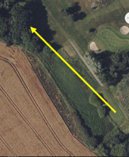 . It’s location is illustrated by the picture on the left which shows the tee on the 12th hole and the arrow shows the path of Psycho’s first tee shot on the hole. His “provisional” second shot reached the middle of the fairway and his playing partners set off only to discover that Psycho was no longer with them. Much to their astonishment he had entered the primeval forest in search of his ball. They were disinclined to join him in his enterprise. Minutes passed and his partners decided to set off and play their balls. Having done so they turned again to see a scene from “Deliverance” as Psycho appeared with a four inch gash on his skull and blood running down his forehead, muttering about holly, barbed wire and fallen trees. Memories of Slaley Hall (or was it Linden Hall?) and “Who’s Psycho?” Immediately sprang to mind. (Further illustration, it’s hoped, appears below.)