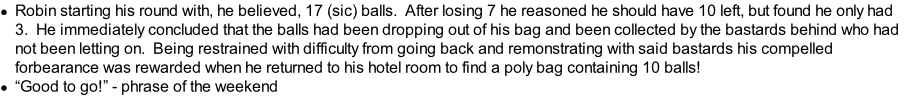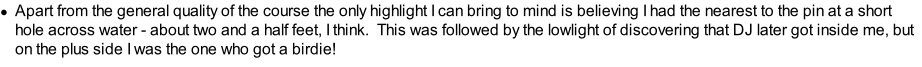 Something of a find - excellent value at a good James Braid designed course. JM triumphed and won a fine Arbroath Artisans' Golf Club jersey which has joined the great wall of China in being rumoured to be the only other man made artefact visible from space.