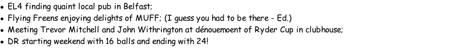 A beautiful golf course to give a fitting golfing conclusion to the Freens' tour. Unfortunately no Freen could rise to the occasion and the round was one by Allan Oliver with 37 points leaving 6 others tied on 31 and Graeme down at 24, but he had had a tough week.