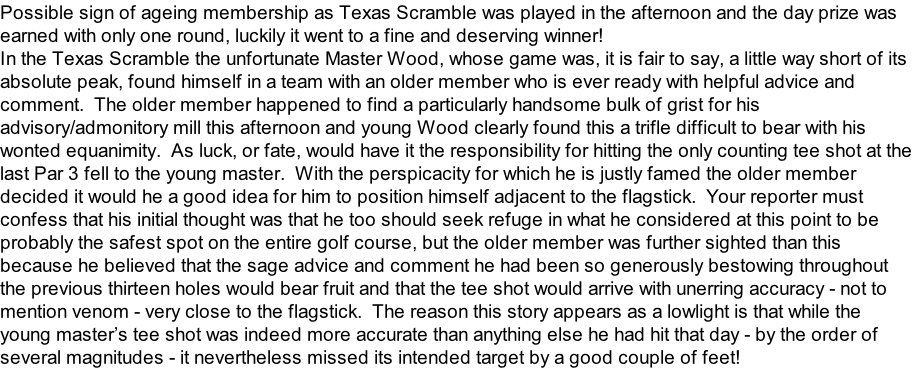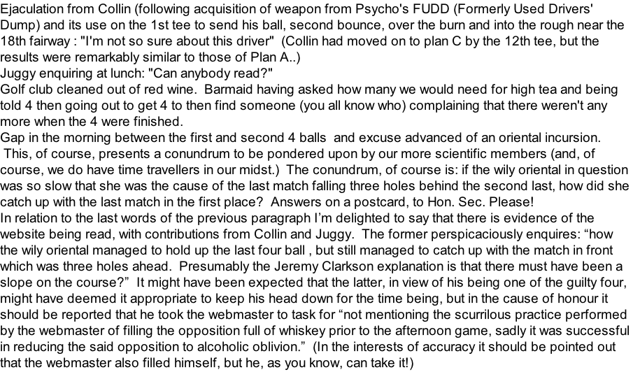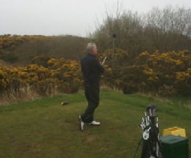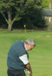 …and aother for afficionadoes of the golf swing. What you need to know here is that after he played the shot our esteemed winner of the day said “I lifted my head”. The picture is taken at the moment of impact?!