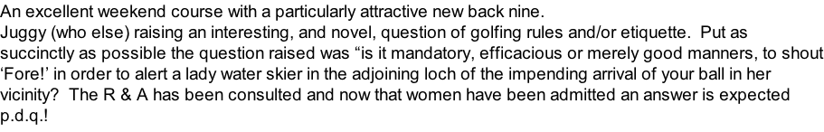 Weather: Overcast with a slight breeze - perfect golfing conditions