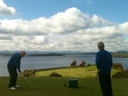 Our eagle-eyed Freen spotting Sellafield nuclear power station and the Cairngorms from the higher parts of the course. (N.B. in this context DP’s recent expedition - sponsored by the Royal Geographic Society - to ascertain the height and condition of the mountains of Orkney, last seen by the same Freen from Lossiemouth, proved unsuccessful as someone appears to have nicked them!)