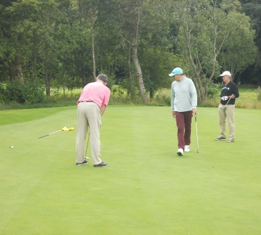 Erick merits another mention here for one of his finest moments which occurred on the 13th tee in the morning round. He managed to express three quite different, vehement and detailed moans about the quality of the strike of his tee shot between the moment of impact and the ball’s coming to rest about eight feet from the hole preparatory to his holing the putt for his third 2 of the round. The founder and Life President of the DM (Disproportionate Moaners) Club is currently considering his position!